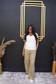 Khaki Embroidered Hem Denim Pants